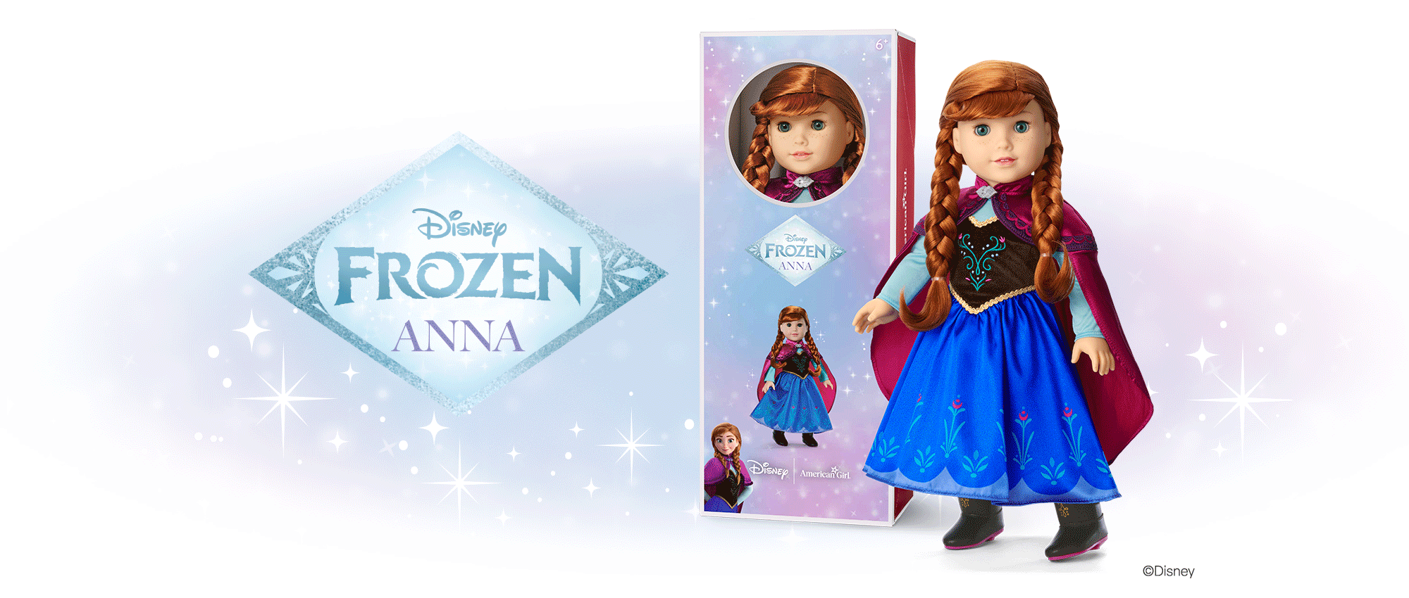Optimistic and caring, Disney’s Anna always tries to do the right thing for her kingdom and those she loves. The American Girl Anna-inspired 18-inch doll captures this warm heart and bold spirit. Dressed in her signature embroidered velvet bodice and royal blue skirt, she comes complete with magenta cape and golden-accented boots. Her dress features an embroidered bodice with floral detailing along the skirt. Her double braids and freckled face give her that unmistakable Anna look, with every detail reflecting the favorite Disney film.